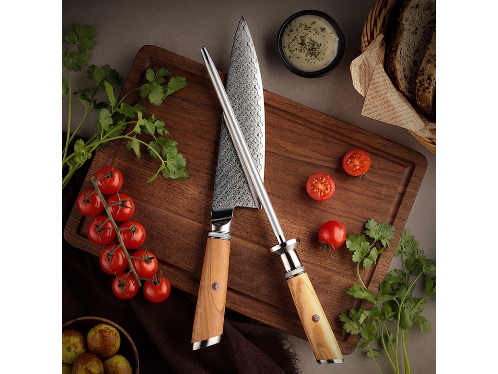 Diamantová ocílka Samurai s rukojetí s olivového dřeva