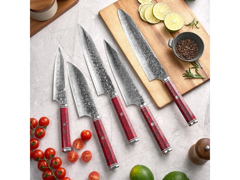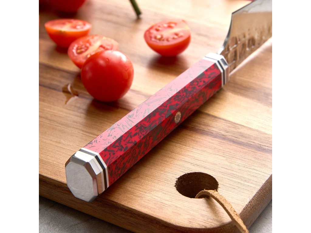 Rukojeť: Hi-tech červený karbon (Red Carbon) pro maximální odolnost a unikátní design.
