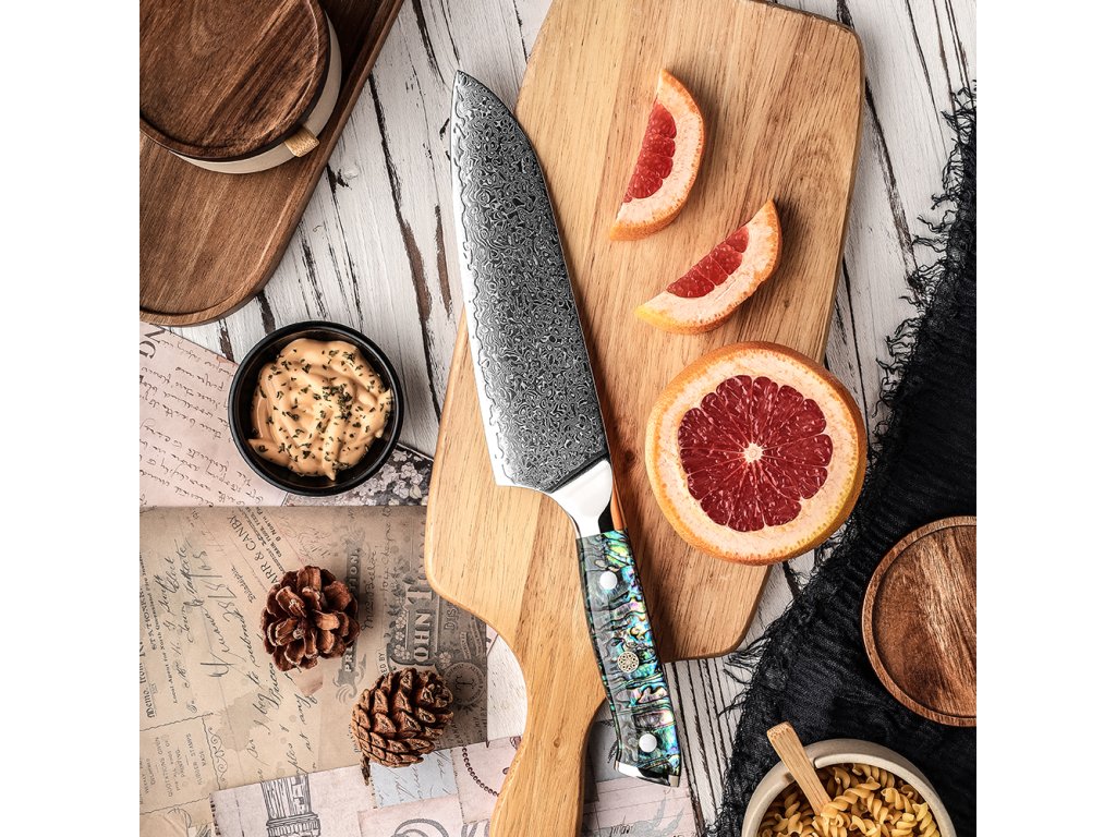 Malý santoku nůž Samurai Abalon Shell – mistrovský nástroj s perleťovým luxusem