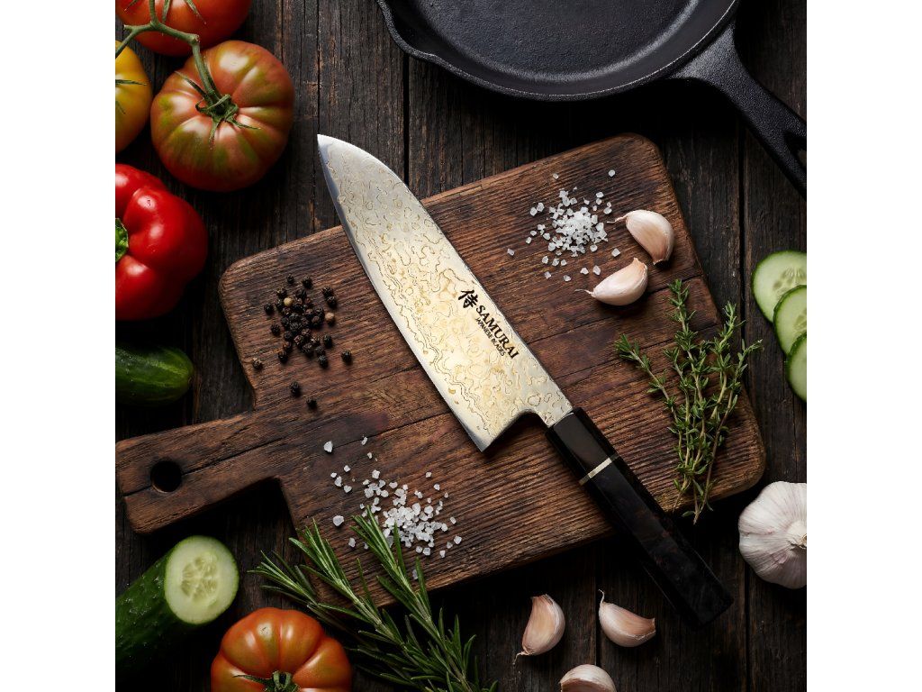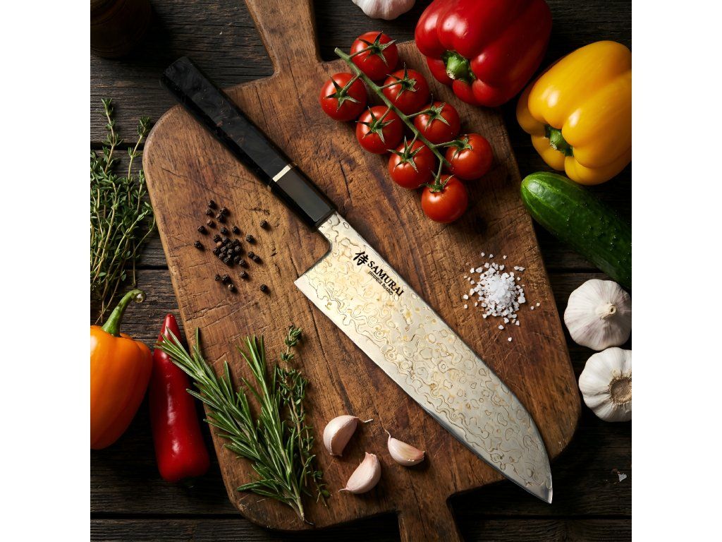 Každý opravdový mistr kuchyně potřebuje čepel, na kterou se může stoprocentně spolehnout. Tento 7palcový (18 cm) japonský nůž Samurai Santoku Japan Damascus je esencí japonské dokonalosti a hrdou součástí nabídky e-shopu samurai.cz. Jde o majestátní a neuvěřitelně všestranný nástroj, se kterým s naprostou lehkostí zvládnete precizní plátkování masa, filetování ryb i bleskové krájení zeleniny. Každý kus v sobě nese jedinečnou samurajskou duši, která promění každodenní vaření v rituál plný respektu a síly.