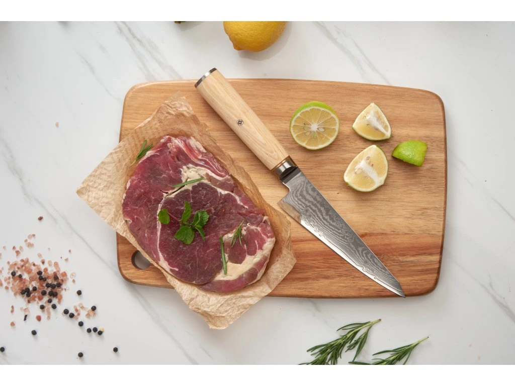 Tvar pro maximální kontrolu Štíhlá a špičatá čepel pronikne hluboko do kloubů a přesně kopíruje tvar kostí. 67 vrstev damaškové oceli nejen chrání jádro, ale také snižuje tření, takže nůž masem proplouvá hladce a nezasekává se.