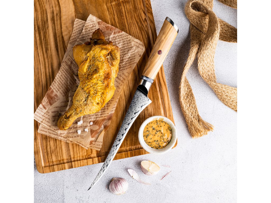 Rukojeť z olivového dřeva dodává noži nejen estetický nádech, ale i pohodlný a jistý úchop. Přírodní dřevo je odolné vůči vlhkosti a dobře vyvážené, což usnadňuje práci i při delším vykosťování.